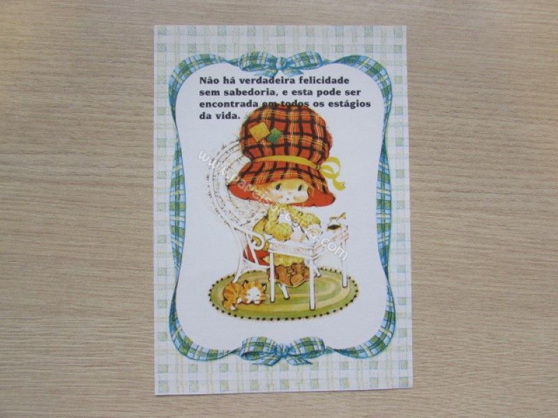 Papel de carta antigo, tamanho médio, de coleção não identificada. Frase: Não há verdadeira felicidade sem sabedoria, e esta pode ser encontrada em todos os estágios da vida.