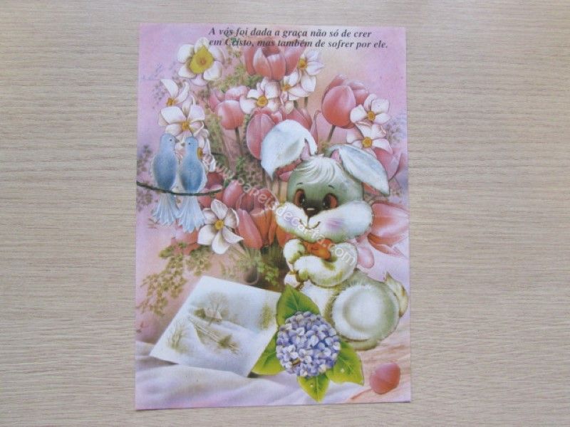 Papel de carta antigo, tamanho médio, de coleção não identificada. Frase: A vós foi dada a graça não só de crer em Cristo, mas também de sofrer por ele.