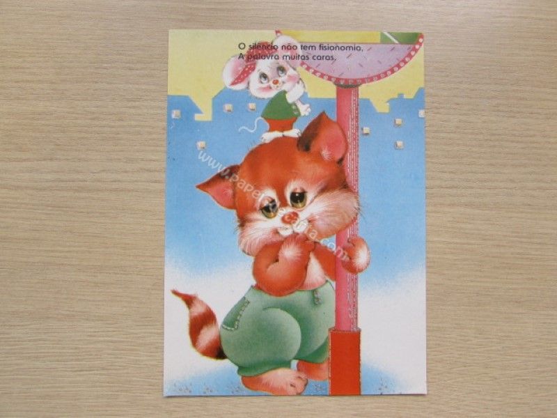 Papel de carta antigo, tamanho médio, de coleção não identificada. Frase: O silêncio não tem fisionomia, a palavra muitas caras.