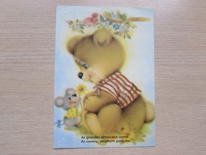 Papel de carta antigo, tamanho médio, de coleção não identificada. Frase: As grandes almas são como as nuvens: recolhem para dar.
