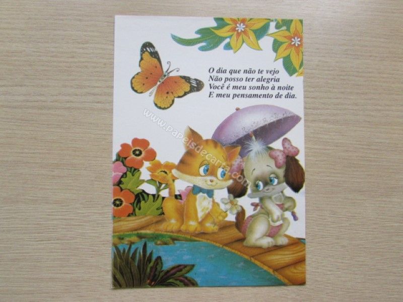 Papel de carta antigo, tamanho médio, de coleção não identificada. Frase: O dia que não te vejo Não posso ter alegria você é meu sonho à noite E meu pensamento de dia.