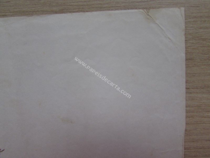 Papel de carta antigo, tamanho médio, de coleção não identificada. OBS: A PONTA DE CIMA ESTÁ COM MARCA DE DOBRADO. VER FOTO 2.