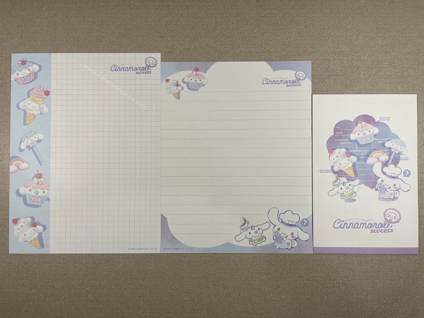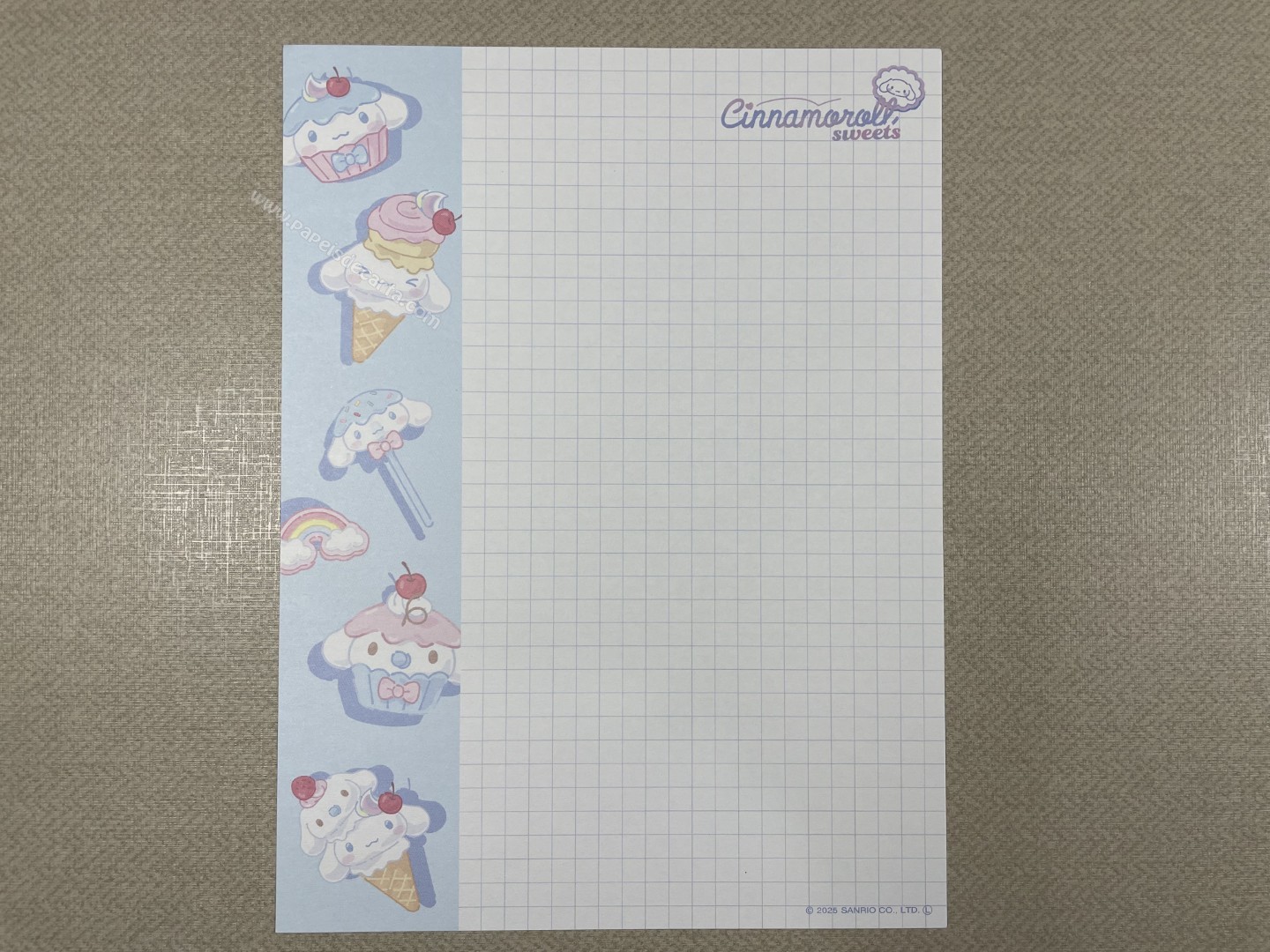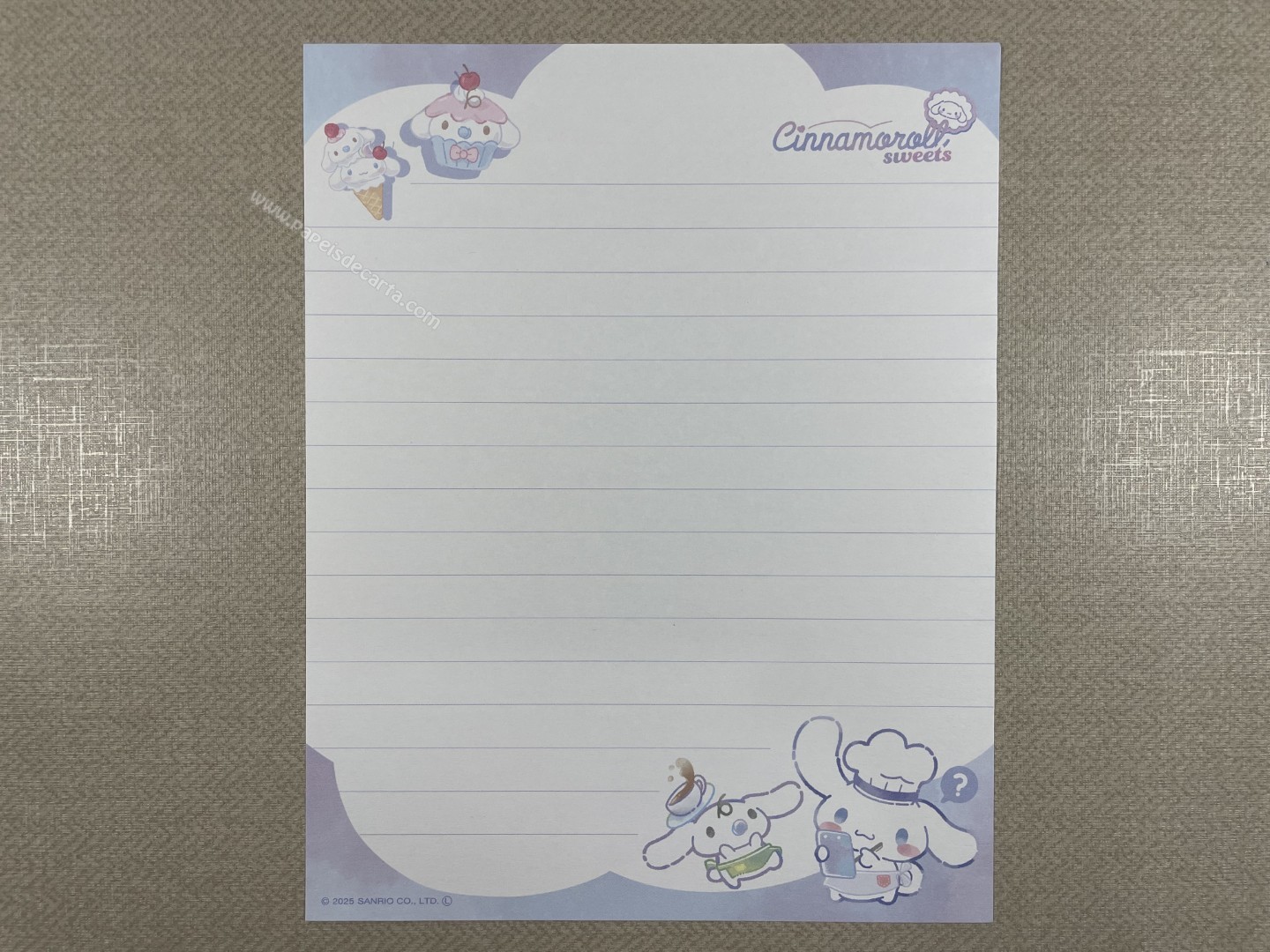 Conjunto de papel de carta importado, com 2 folhas e 1 envelope, do Cinnamoroll, da Sanrio.