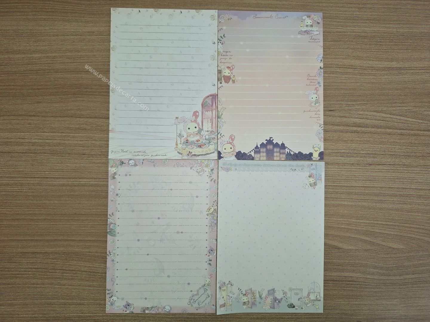Lote de papel de carta importado, do Sentimental Circus, da San-X, com 4 folhas diferentes, tamanho pequeno, Larg: 10,5cm X alt 15cm.