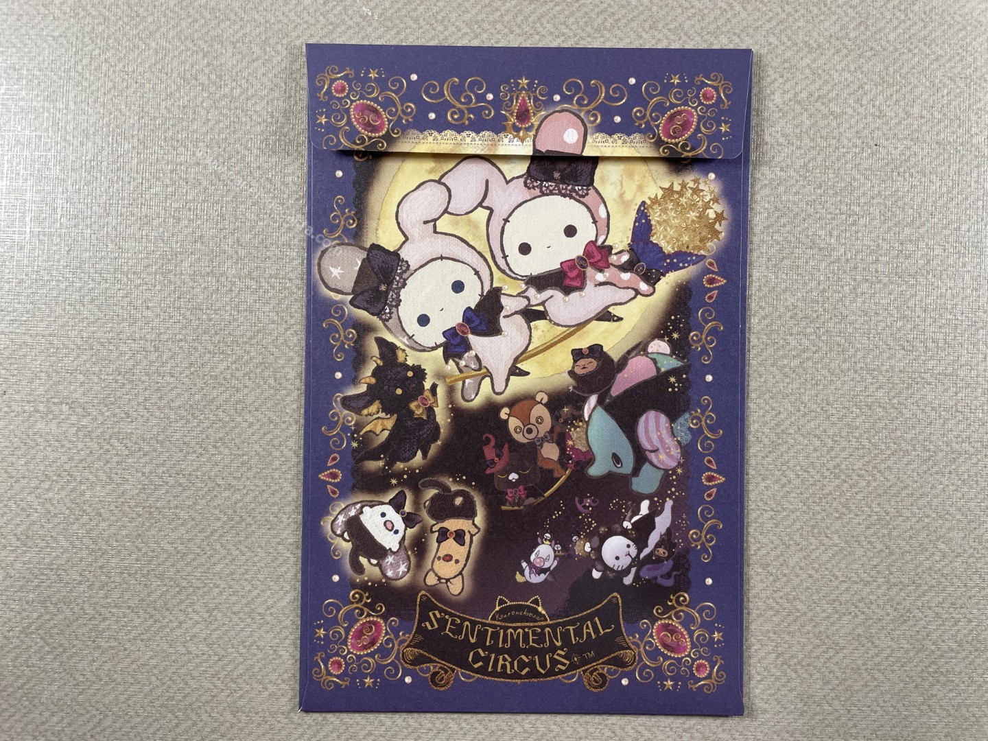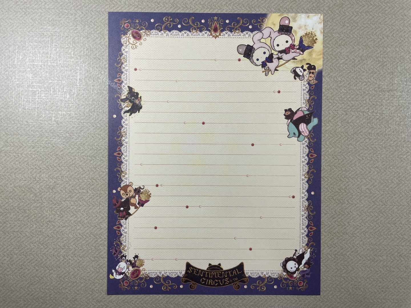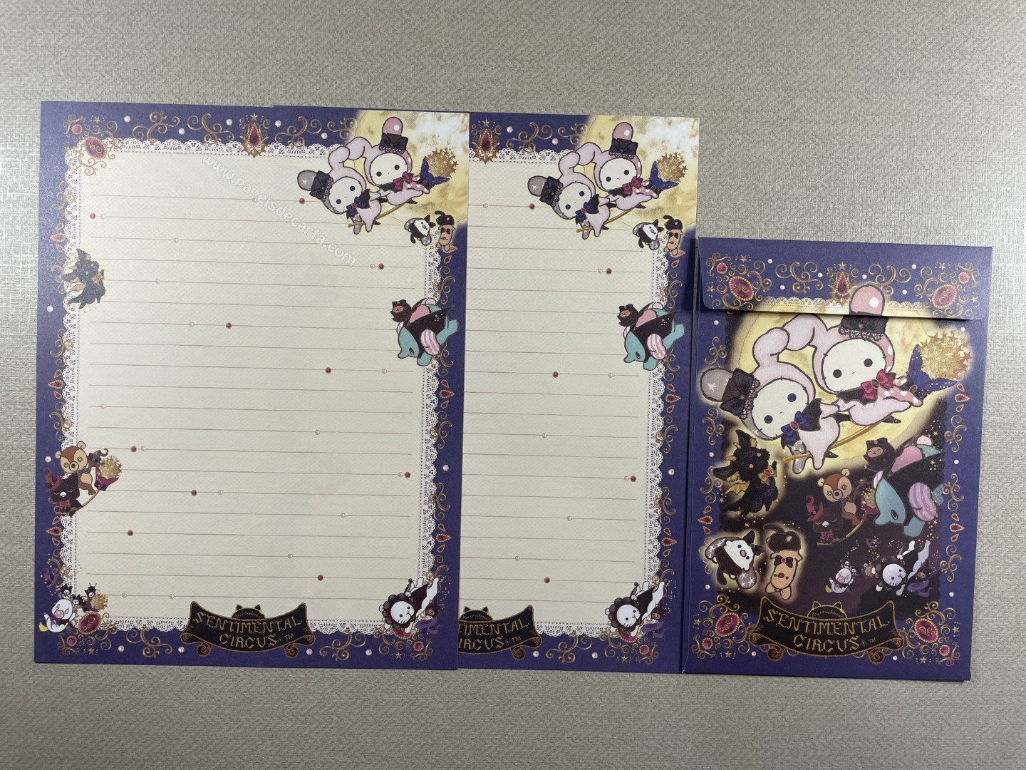 Conjunto importado, de papel de carta do Sentimental Circus, da San-X, com 2 folhas e 1 envelope.