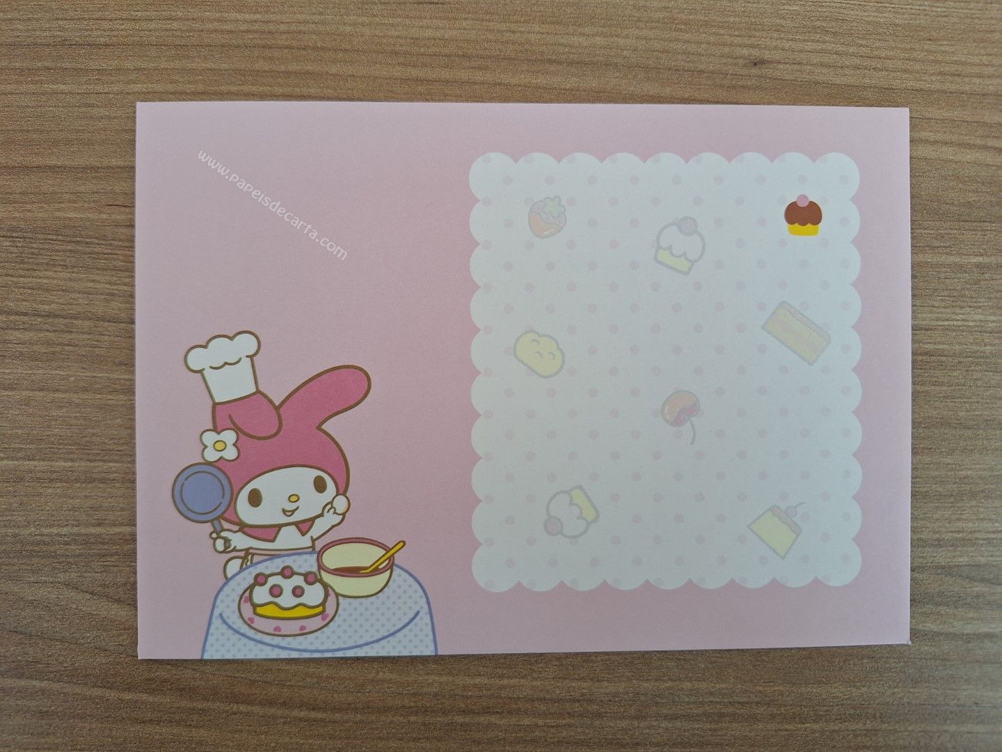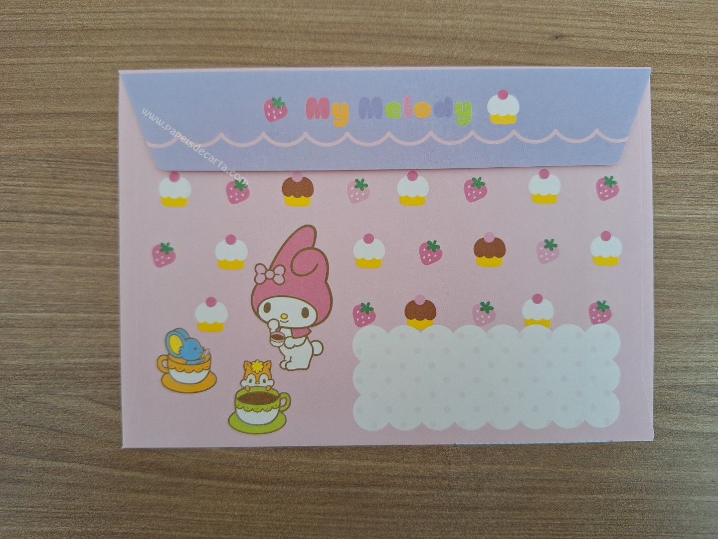 Papel de carta importado da My Melody com 1 folha e 1 envelope.