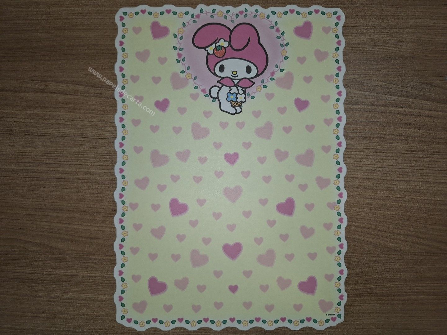 Papel de carta antigo da My Melody com 1 folha. Tamanho um pouco maior que o médio: larg:18,5cm x 26cm.