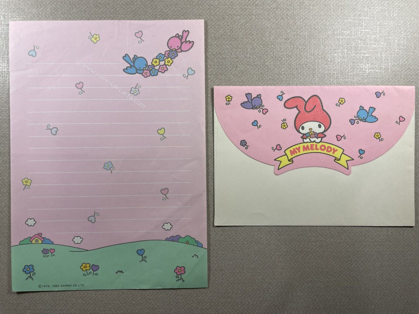 Papel de carta antigo da My Melody. Tamanho médio. ** O PAPEL POSSUI UMA MARCA DE CLIPS NA PARTE DE CIMA. OBSERVAR FOTO. **
