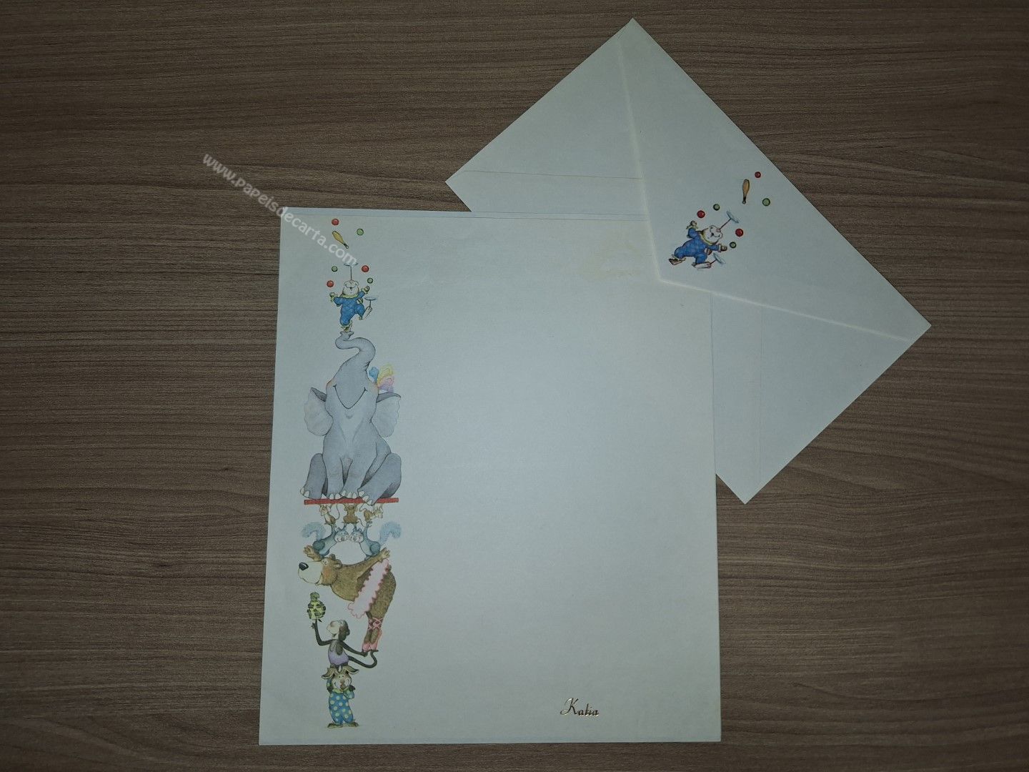 Papel de carta tamanho médio. ** O PAPEL POSSUI O NOME "KATIA" GRAVADO NELE E POSSUI MANCHINHS DO TEMPO. VER FOTOS.**