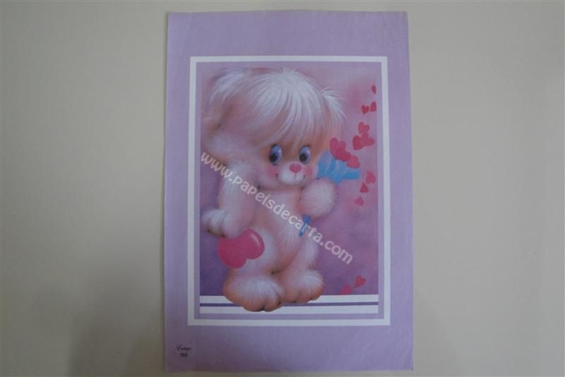 Papel de carta grande Cartiuge - 189 - Um cachorrinho segurando um bouquê de corações.