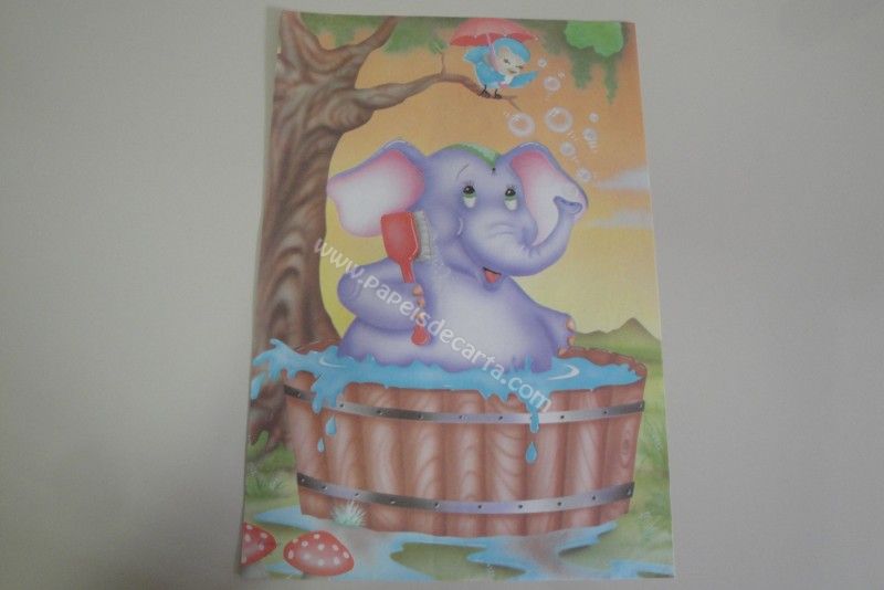 Papel de carta grande Cartiuge - 24 - Um elefante tomando um banho embaixo de uma árvore.