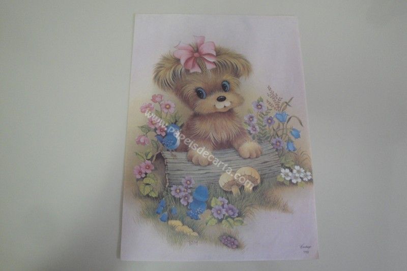 Papel de carta grande Cartiuge - 110 - Uma cachorrinha apoiada em um tronco de árvore e observando um passarinho.