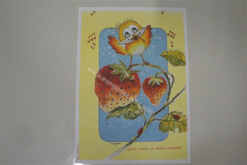 Papel de carta antigo, raro, tamanho médio, Cristina - Borda Branca nº 055. Frase: Quem canta, os males espanta!