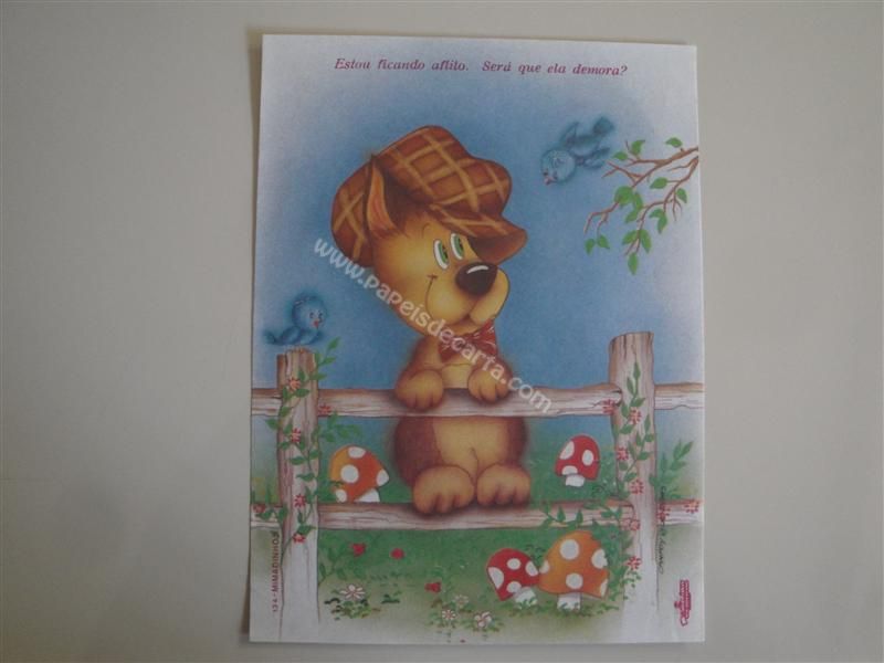 Papel de carta antigo, raro, tamanho médio, Cristina - Mimadinhos - 134. Frase: Estou ficando aflito. Será que ela demora?