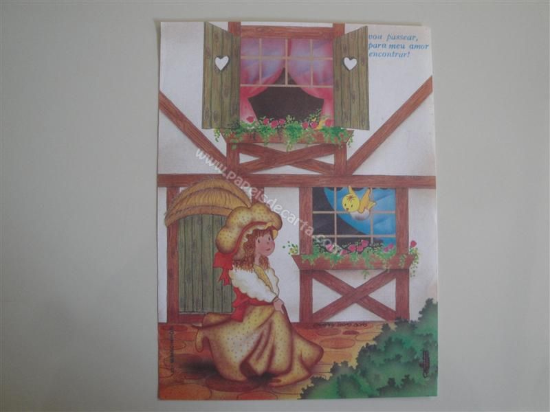 Papel de carta antigo, raro, tamanho médio, Cristina - Mimadinhos - 132. Frase: Vou passear, para meu amor encontrar!
