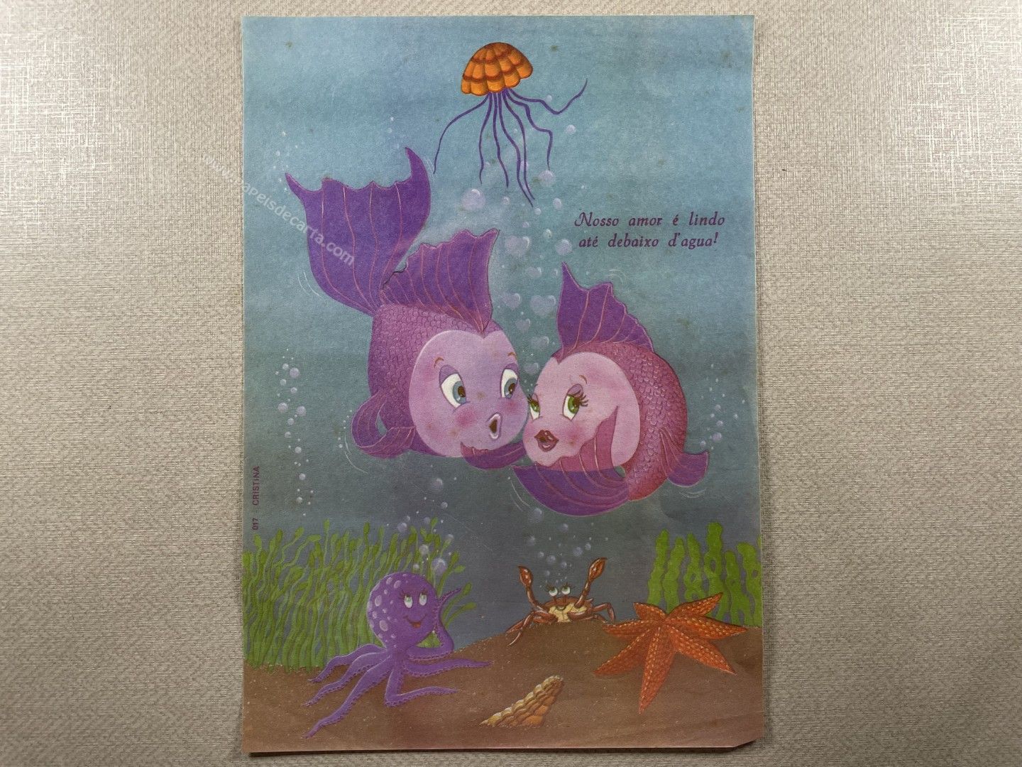 Papel de carta antigo, raro, tamanho médio, da coleção Cristina, número 017. ** O PAPEL TEM MANCHINHAS DO TEMPO. OBSERVAR FOTO.**
