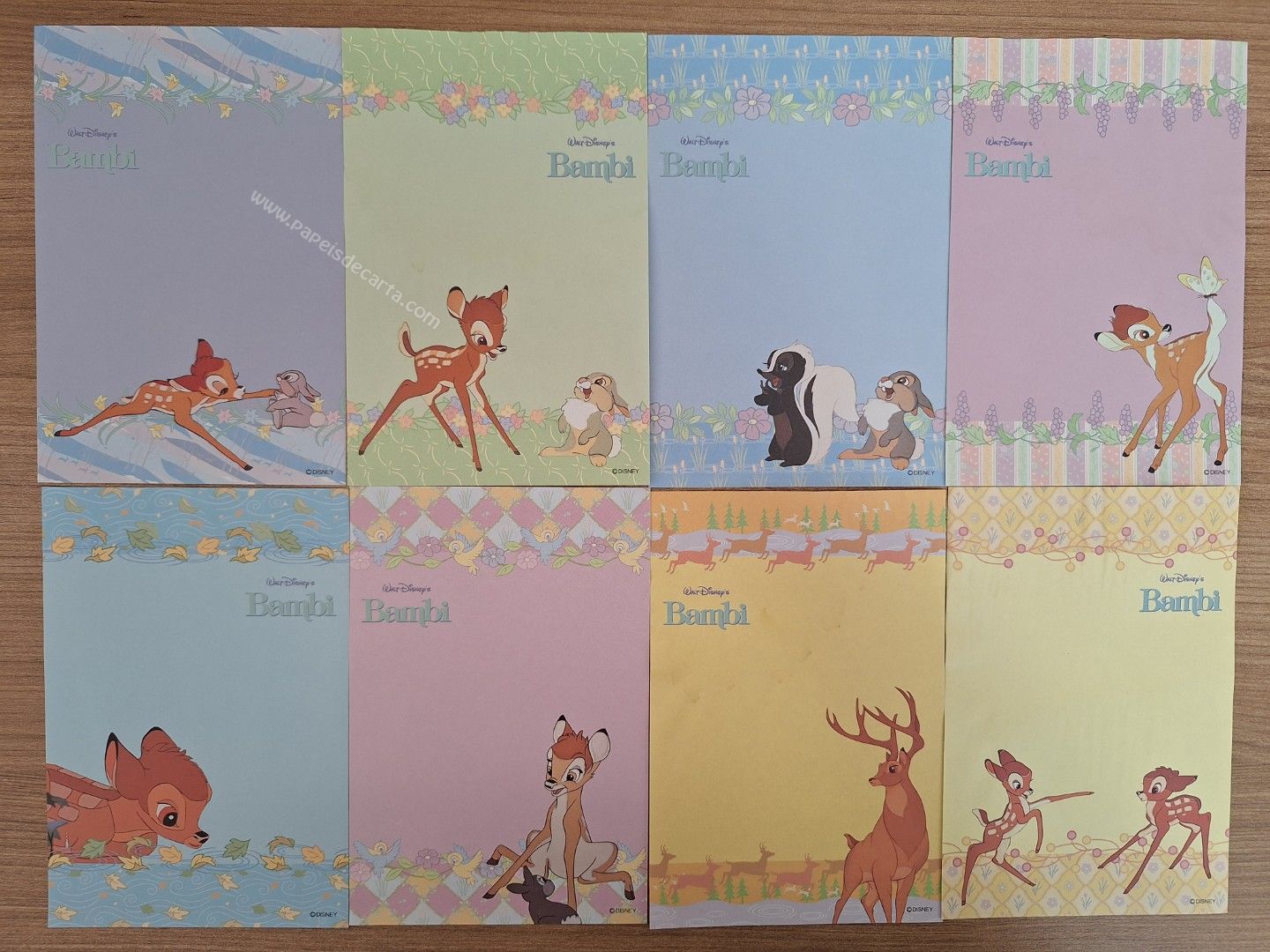Lote importado, de papel de carta com 8 folhas diferentes, tamanho pequeno da Disney - Bambi.