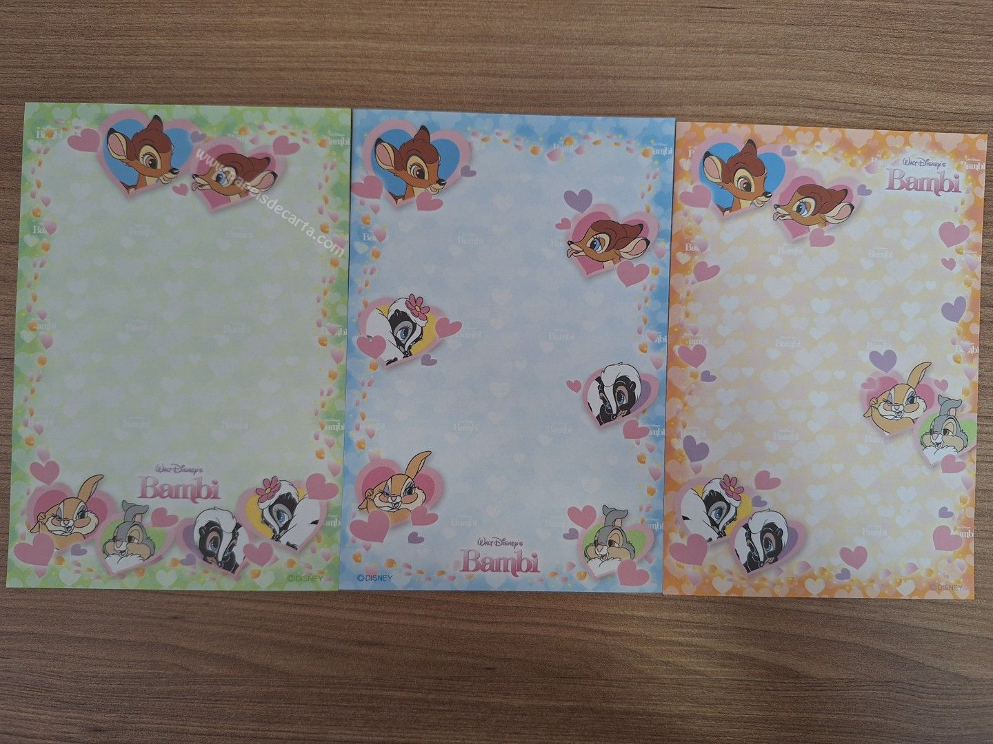 Lote importado, de papel de carta com 3 folhas diferentes, tamanho pequeno da Disney - Bambi.