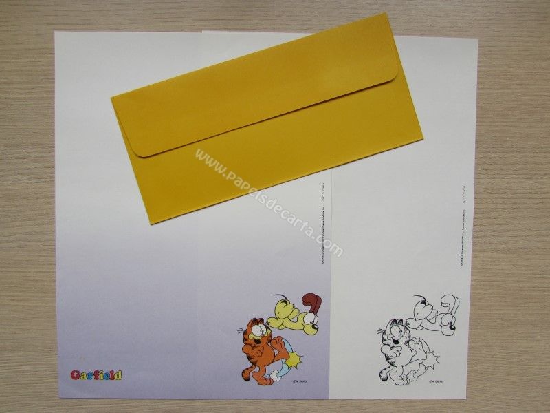 Papel de carta antigo, tamanho grande, com 2 folhas diferentes e 1 envelope da coleção Garfield.