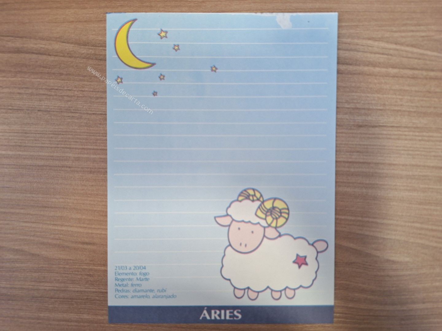 Papel de carta antigo, raro, tamanho médio, da coleção Signos - Áries.