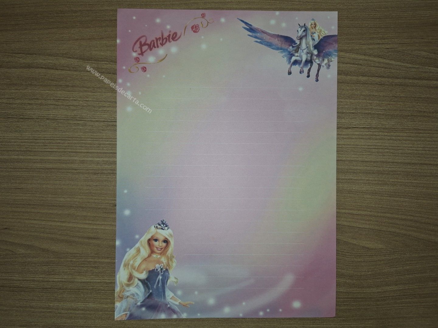 Papel de carta antigo, tamanho médio, da coleção Barbie.