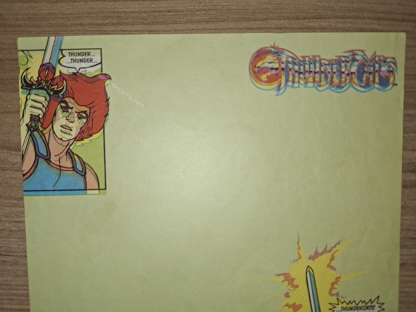 Papel de carta antigo, tamanho médio, da coleção thundercats, sem numeração. ** OBSERVAR FOTO, POIS O PAPEL ESTÁ DESFOCADO. NÃO SEI SE É FALHA AO IMPRIMIR OU SE É DE PROPÓSITO. **