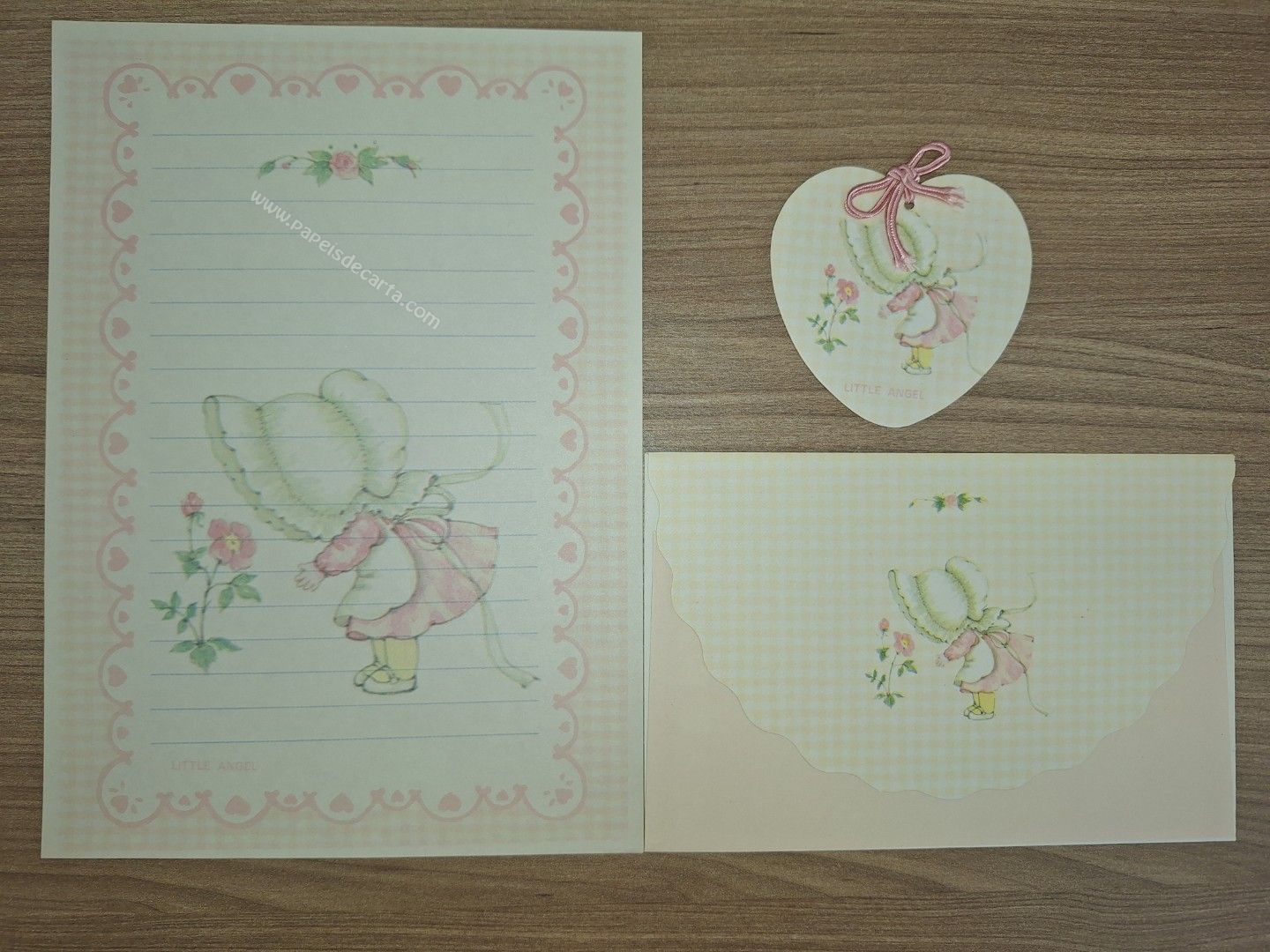 Conjunto de papel de carta antigo da coleção Little Angel, com 1 folha, 1 envelope e 1 memo.