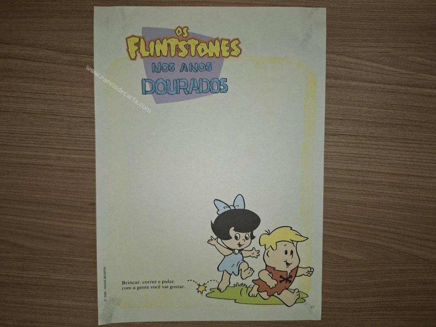 Papel de carta da coleção Os Flintstones nos anos dourados, tamanho médio. ** O PAPEL FOI COLADO NAS PONTAS EM FOLHA SULFITE E NA HORA DE TIRAR, O PAPEL NA PARTE DE TRÁS FICOU MAIS FININHO. OBSERVAR FOTO. **