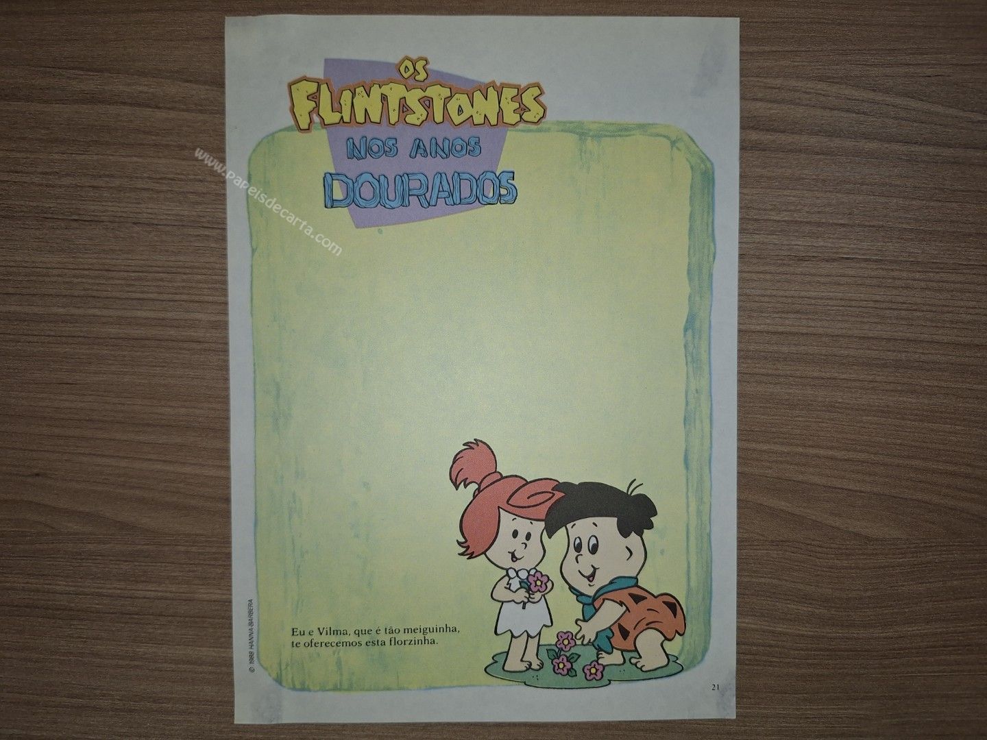 Papel de carta da coleção Os Flintstones nos anos dourados, tamanho médio. ** O PAPEL FOI COLADO NAS PONTAS EM FOLHA SULFITE E NA HORA DE TIRAR, O PAPEL NA PARTE DE TRÁS FICOU MAIS FININHO. OBSERVAR FOTO. **