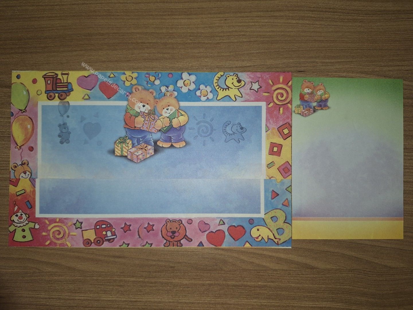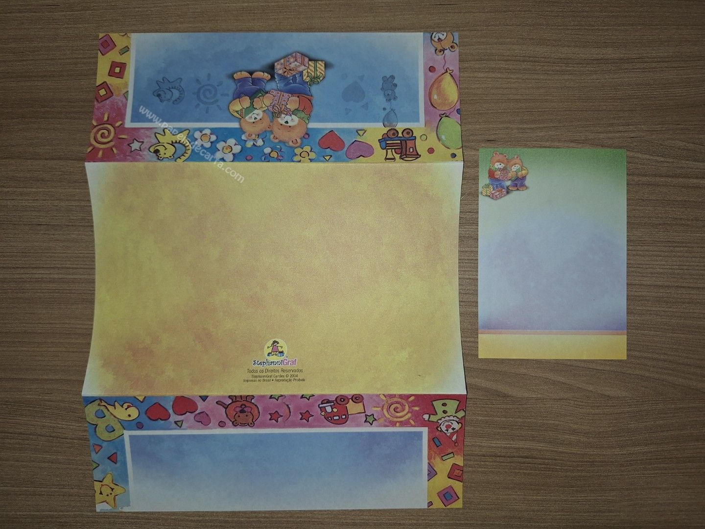 Papel de carta da coleção Stephanni Graf, sendo 1 folha que vira envelope e 1 notinha.