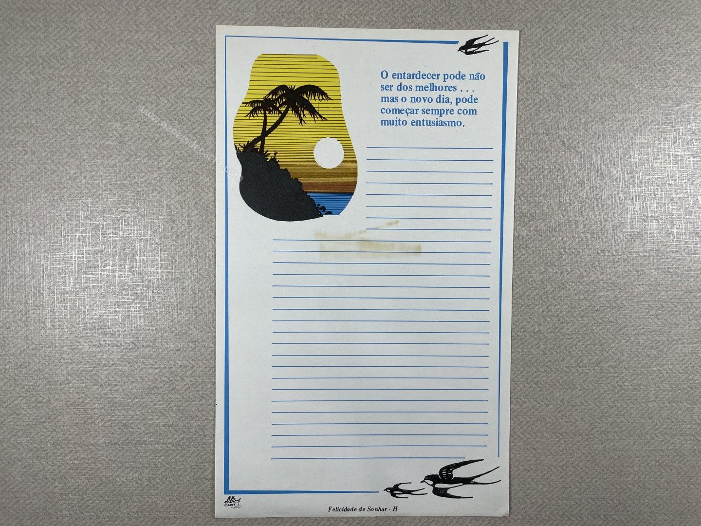Papel de carta antigo, tamanho médio, da coleção Ji Cart, Felicidade de sonhar - H ** O PAPEL ESTÁ MANCHADO. VER FOTO. **