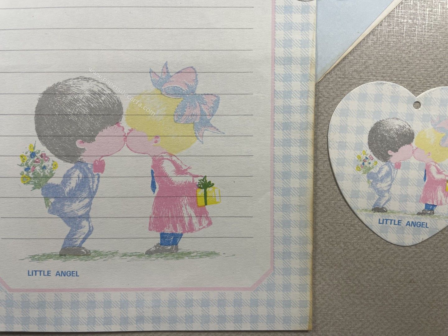 Conjunto de papel de carta antigo da coleção Little Angel, tamanho médio, com 1 folha, 1 envelope e 1 memo. ** A LATERAL DO PAPEL ESTÁ AMARELADINHA. VER FOTO. **