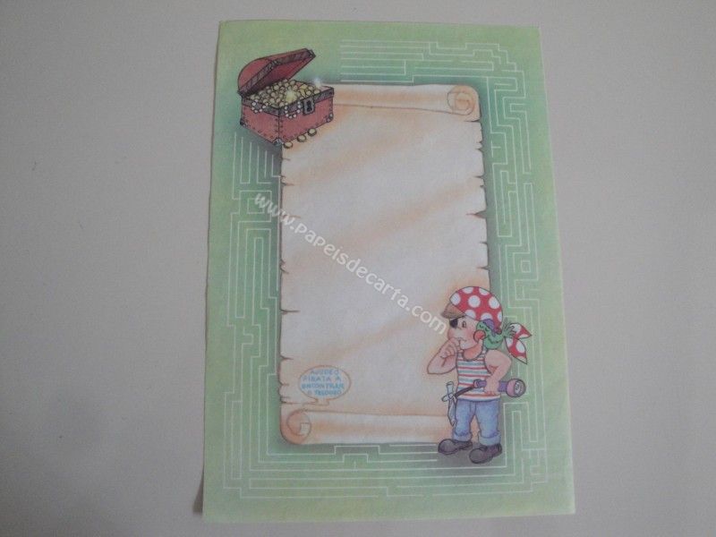 Papel de carta antigo, raro, tamanho médio, de coleção não identificada, para atividades. Atividade: Ajude o pirata a encontrar o tesouro.
