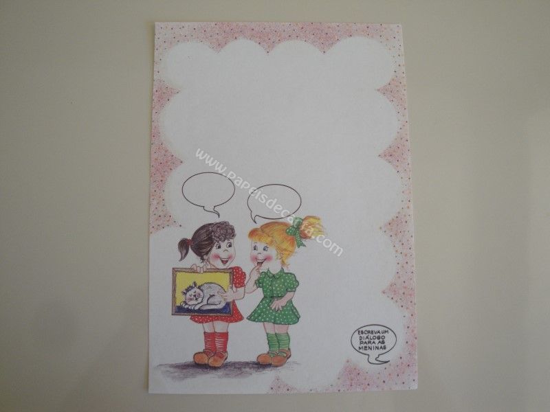 Papel de carta antigo, raro, tamanho médio, de coleção não identificada, para atividades. Atividade: Escreva um diálogo para as meninas.