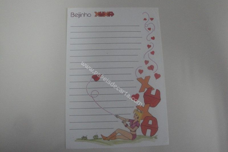 Papel de carta antigo, raro, tamanho médio, da coleção Xuxa, sem numeração. A Xuxa (em desenho) empinando uma pipa.