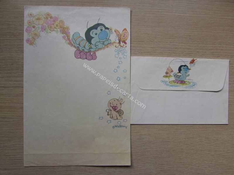 Papel de carta antigo com envelope, tamanho um pouco maior que o médio, da coleção Walbercy. OBS: ESTÁ COM A PARTE DE BAIXA COM MARCA DE DOBRADO.