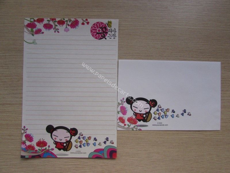 Papel de carta antigo, tamanho médio, da coleção Pucca.