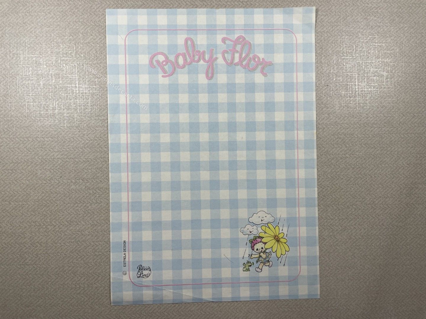Papel de carta antigo, raro, tamanho médio, da coleção Palácios Line - Baby Flor - Azul. ** O PAPEL ESTÁ COM MARCA DE DOBRA NA PARTE DE BAIXO. VER FOTO. **