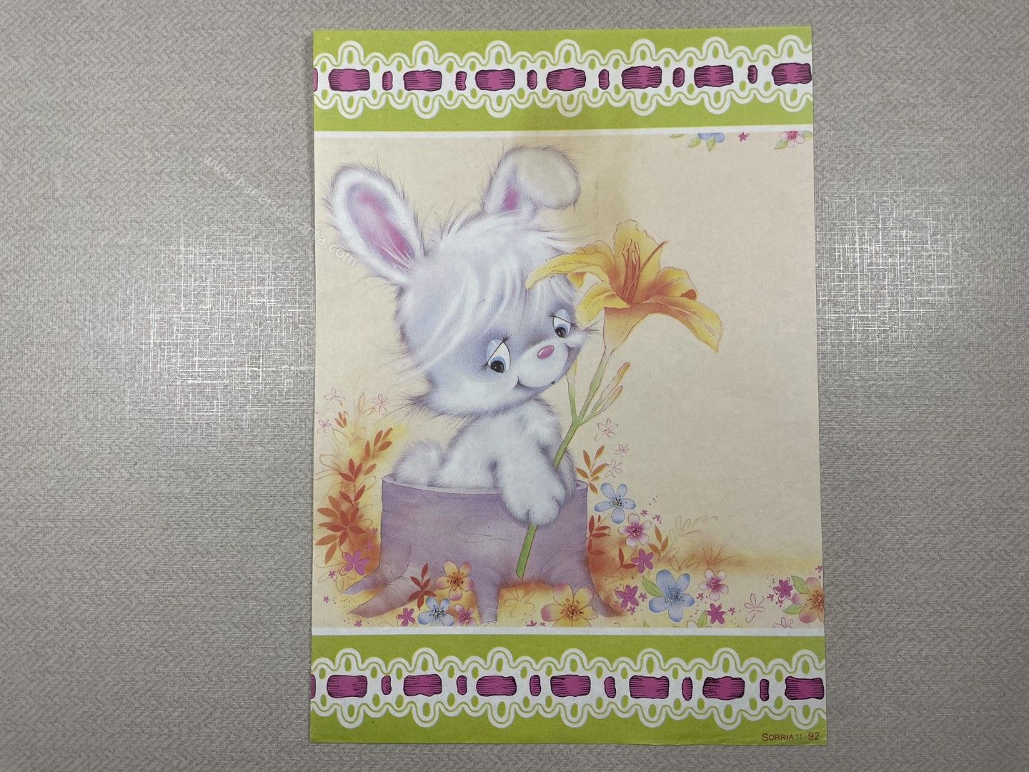 Papel de carta antigo, tamanho médio, Sorria nº 92. ** OBSERVAR FOTO. O PAPEL TEM UMA MANCHA.**
