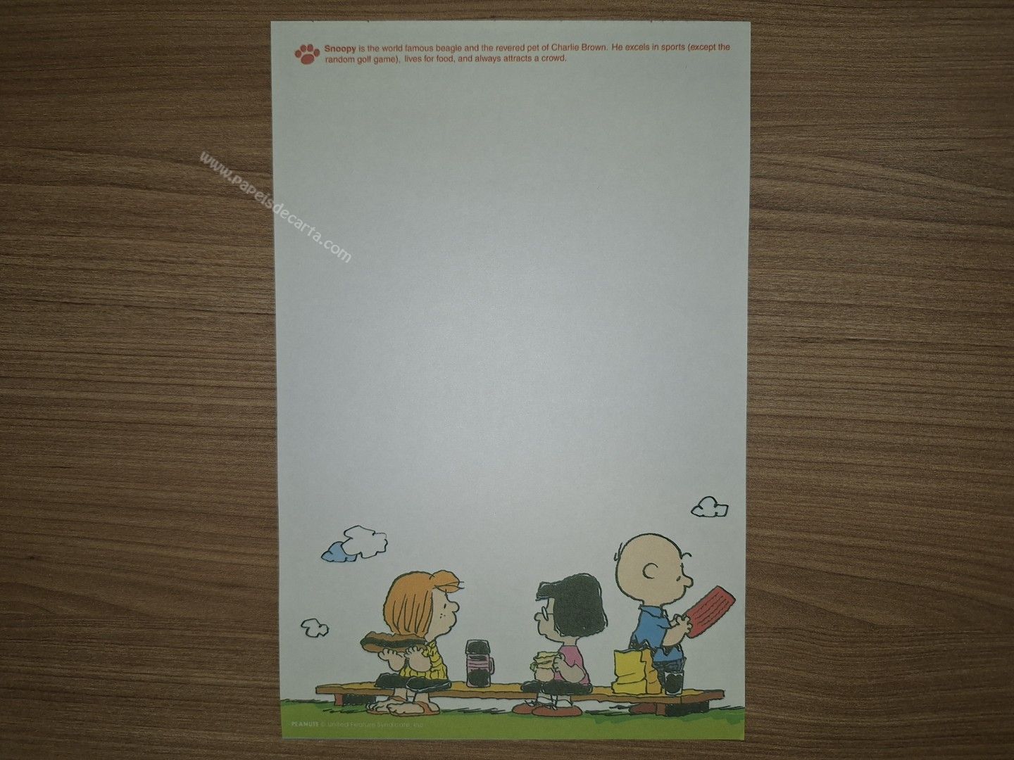Papel de carta, importado, do Snoopy. Tamanho médio: larg: 13,6cm x alt: 21cm.