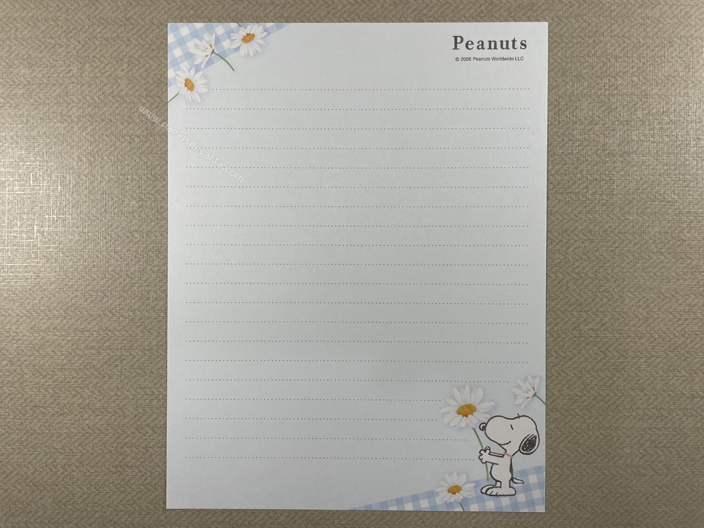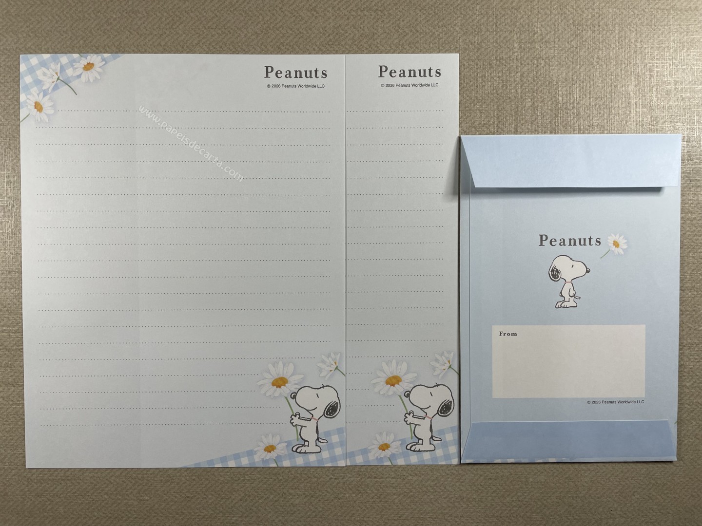 Conjunto de Papel de carta importado do Snoopy, com 2 folhas e 1 envelope. Tamanho médio.