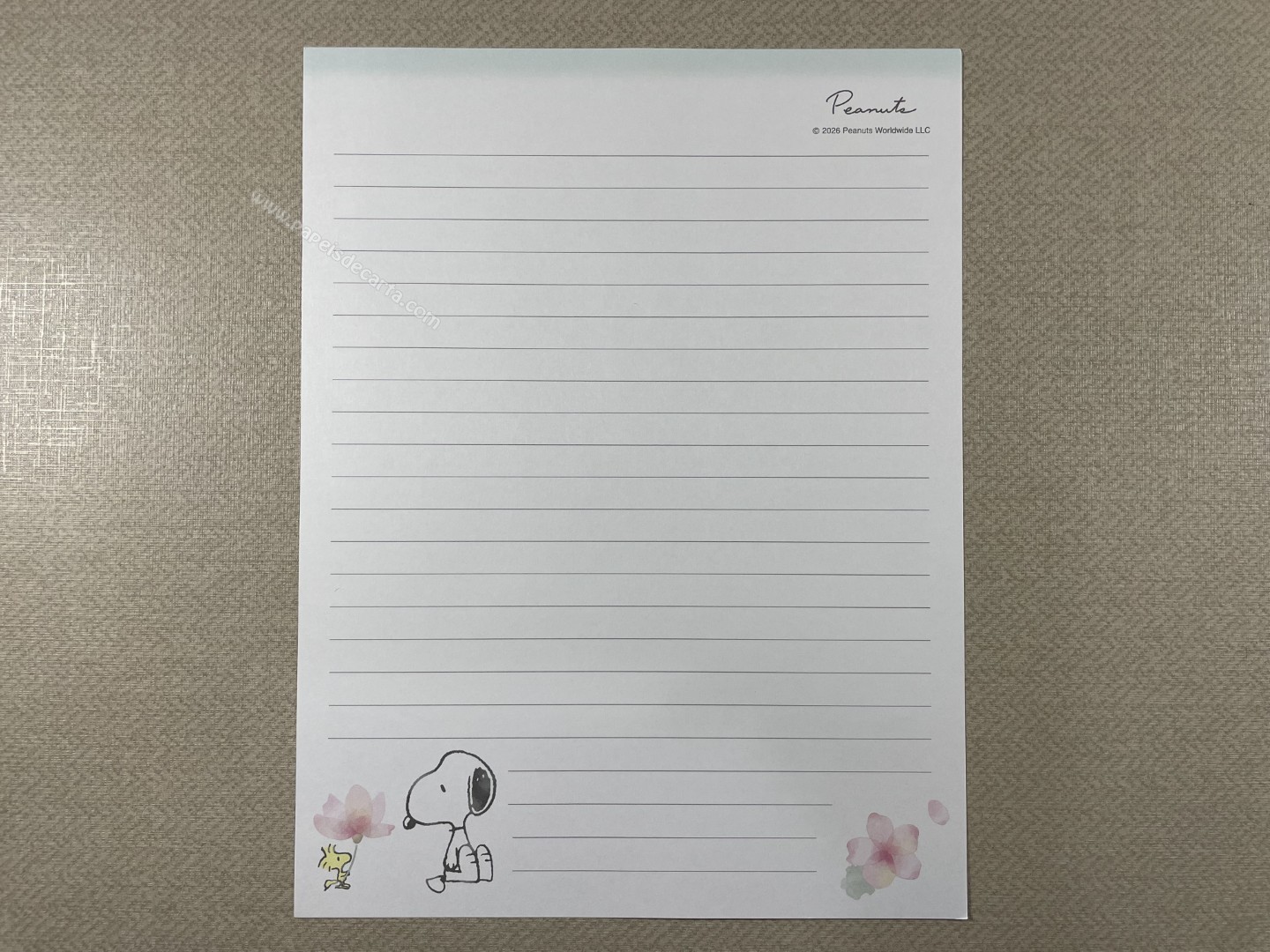 Conjunto de Papel de carta importado do Snoopy, com 2 folhas e 1 envelope. Tamanho médio.