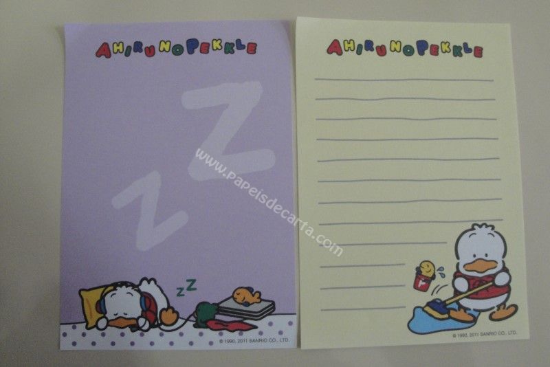 Conjunto importado, de papel de carta com 8 notinhas diferentes do Ahiur no Pekkle, da Sanrio.