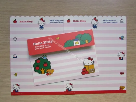 Conjunto com 2 folhas e 1 envelope da Hello Kitty 180
