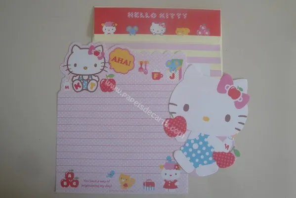 Conjunto com 2 folhas e 1 envelope da Hello Kitty 100