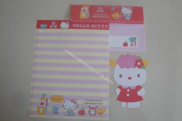 Conjunto com 2 folhas e 1 envelope da Hello Kitty 101
