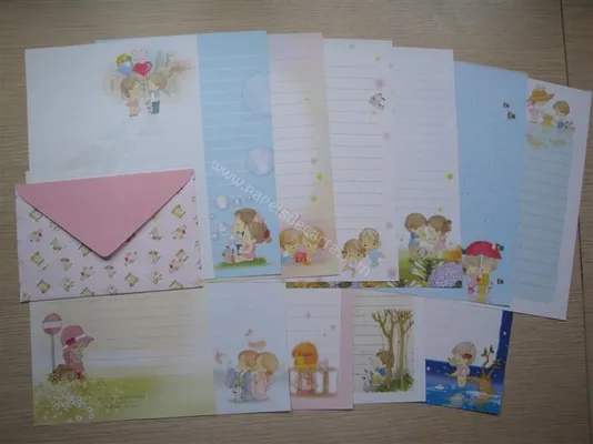 Conjunto com 4 folhas e 1 envelope da Amy & Tim 01