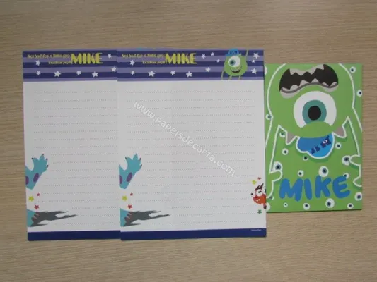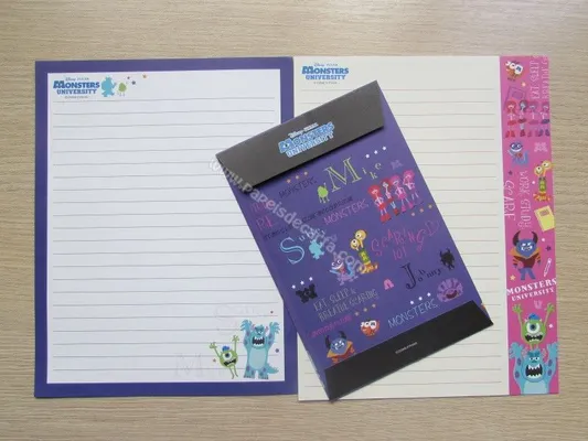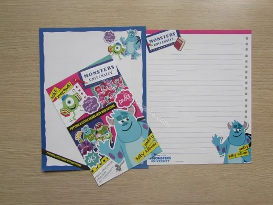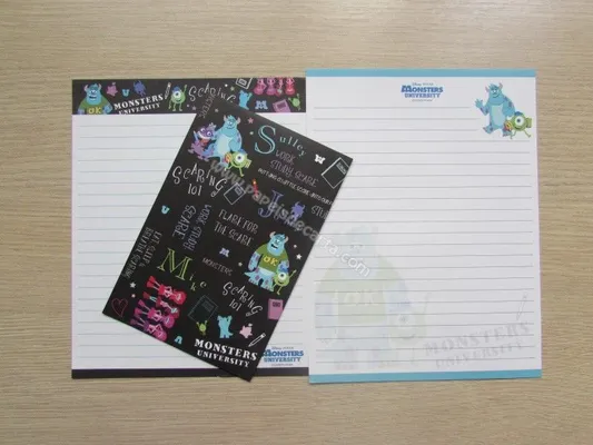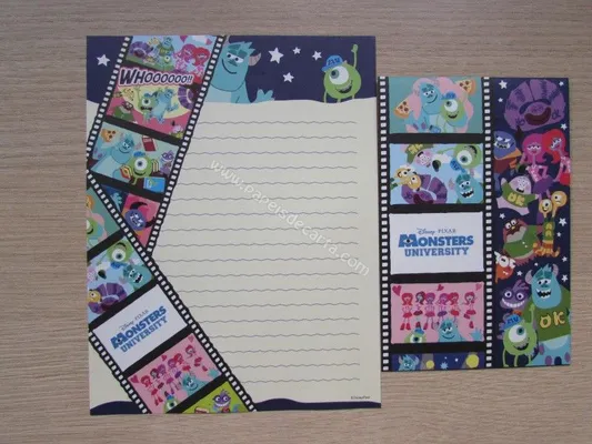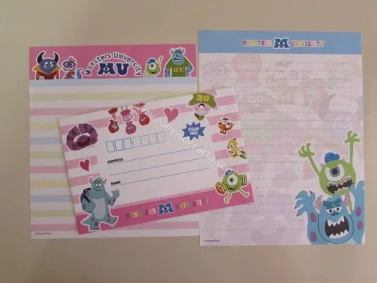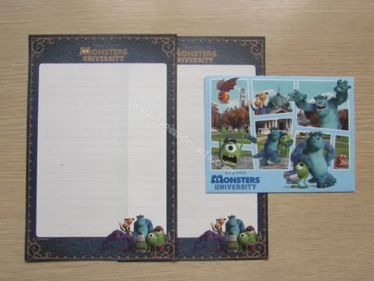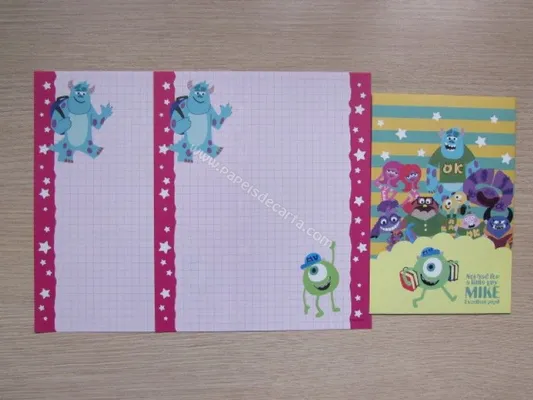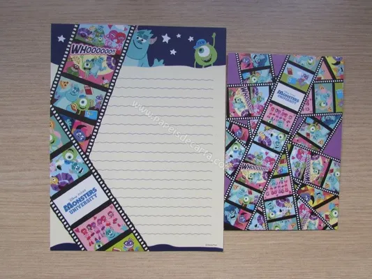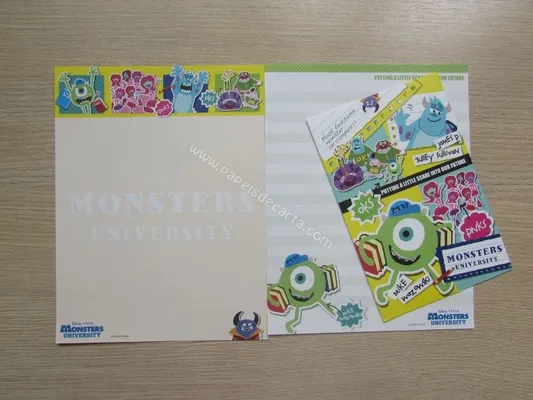 Conjunto com 2 folhas e 1 envelope do Monsters University 01