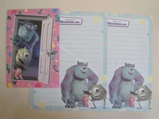 Conjunto com 2 folhas e 1 envelope do Monsters, Inc. 01