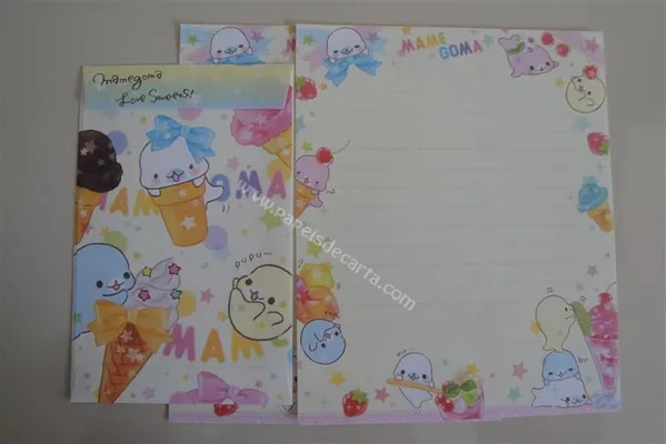 Conjunto com 2 folhas pequenas e 1 envelope pequeno do Mamegoma 01